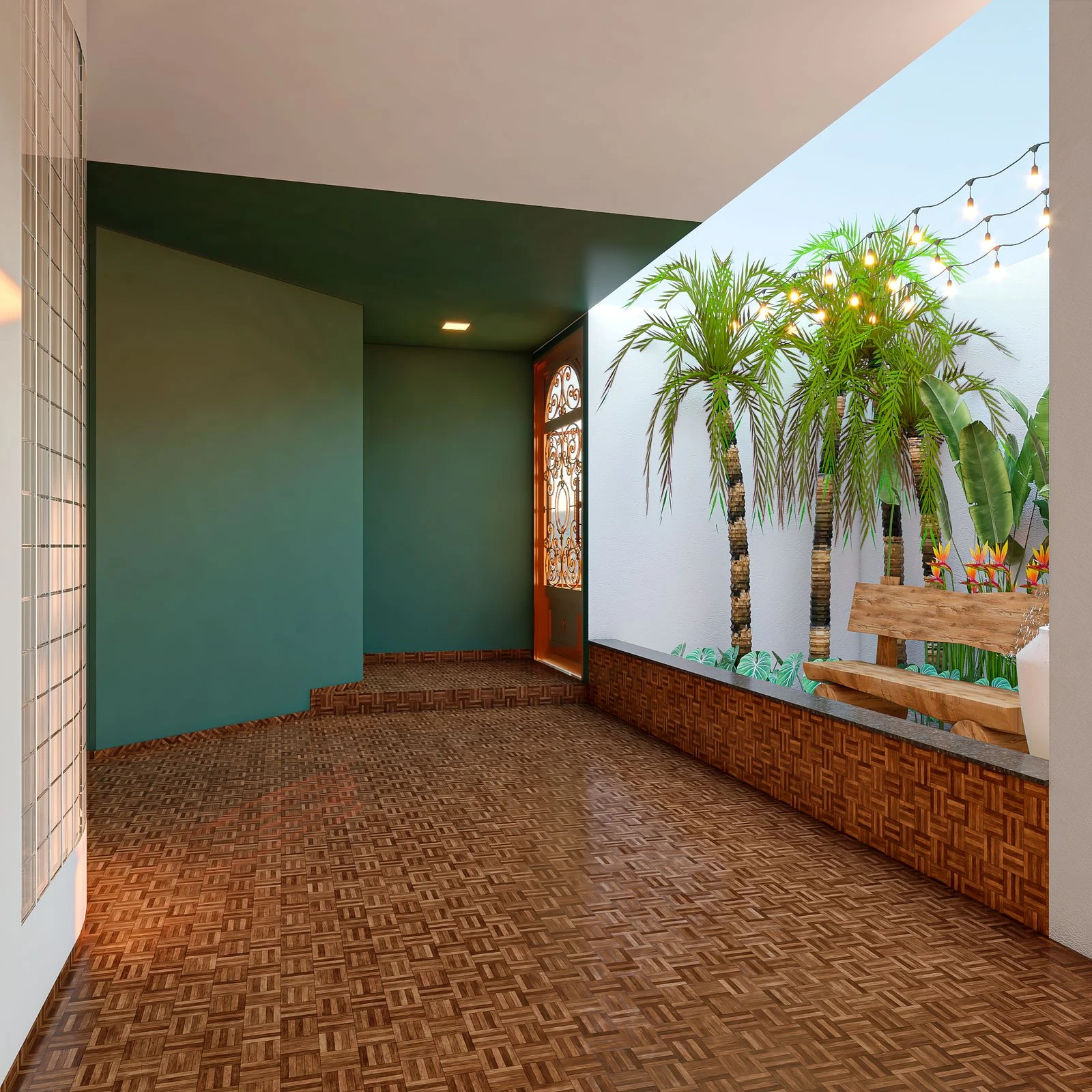 Jardim, varanda, escadarias e áreas a céu aberto para ensaios com clima natural e identidade visual marcante.